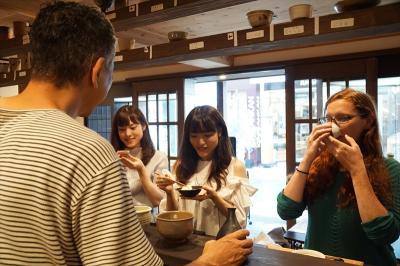 有名な鳴滝酒造や小松酒造がある。このお酒を自分で選んだ唐津焼のちょこで