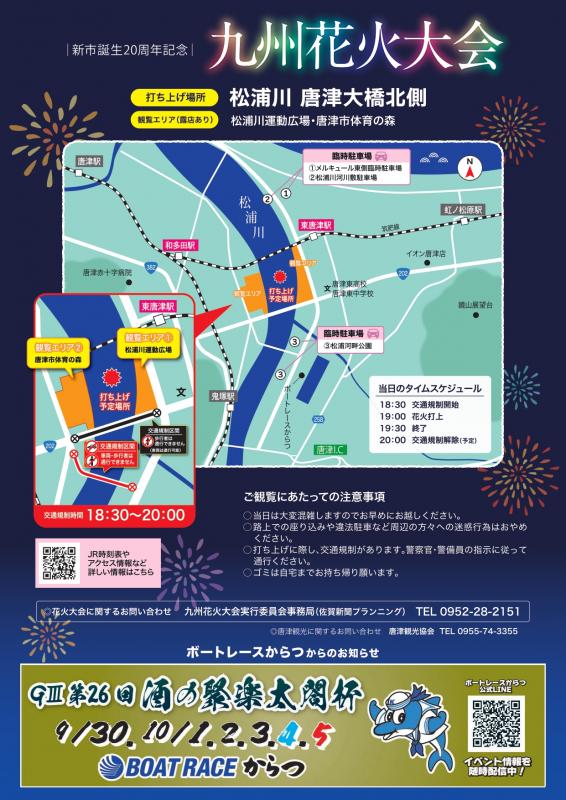 電話番号 0952-28-2151 (第73回九州花火大会実行委員会事務局)