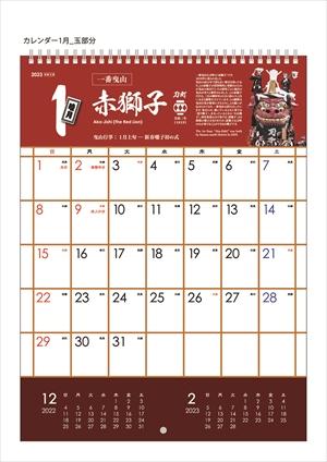サイズ:35cm×26cm 15枚綴り(表紙+14台曳山写真+暦)