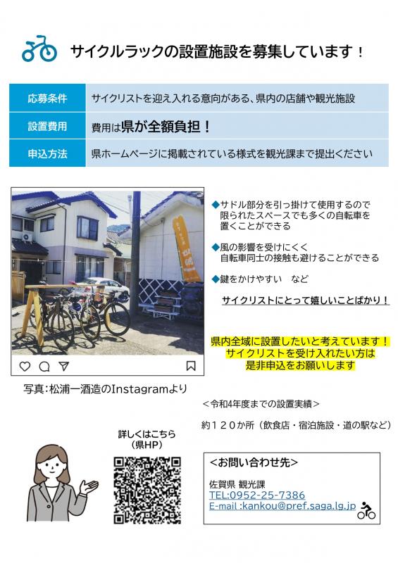 Tweet佐賀県では、サイクリストへの受入環境整備の一環としてサイクルラックの設置を進めており、