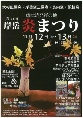 HOME 唐津の9つの魅力 唐津介绍 唐津介绍 唐津的美食介绍 観光地のご紹介 祭り・イベントのご紹介 唐津烧介绍 特产品介绍 住宿设施介绍 历史文化介绍 餐饮 唐津的美食介绍 ジャンル検索 观光地 観光地のご紹介 观光搜索 体验计划 体验计划搜索 节日、活动 祭り・イベントのご紹介 ジャンル検索 唐津烧 唐津烧介绍 ジャンル検索 特产品 特产品介绍 ジャンル検索 住宿设施 住宿设施介绍 ジャンル検索 历史文化 历史文化介绍 ジャンル検索 交通アクセス 新着情報 推荐线路 唐津のおすすめ パンフ・ガイドマップ フォトライブラリー 视频集 最多浏览 经常有的疑问 Facebook リンク集 閉じる Language 日本語 English 한국어 中文(繁体字) 最多浏览 イベントを検索する 第30回 岸岳炎まつり終了しました 北波多 唐津焼 開催日 平成28年11月12日(土)13日(日) 時間 10:00~17:00 住所 唐津市北波多徳須恵1162-1(岸岳ふるさと館特設会場) 電話番号 0955-64-2132(唐津東商工会北波多事務所) 関連資料 チラシ [PDF] 交通指南 JR唐津駅より車で20分 JR山本駅より車で10分 Tweet 地図 ナビ起動