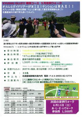 HOME 唐津の9つの魅力 唐津介绍 唐津介绍 唐津的美食介绍 観光地のご紹介 祭り・イベントのご紹介 唐津烧介绍 特产品介绍 住宿设施介绍 历史文化介绍 餐饮 唐津的美食介绍 ジャンル検索 观光地 観光地のご紹介 观光搜索 体验计划 体验计划搜索 节日、活动 祭り・イベントのご紹介 ジャンル検索 唐津烧 唐津烧介绍 ジャンル検索 特产品 特产品介绍 ジャンル検索 住宿设施 住宿设施介绍 ジャンル検索 历史文化 历史文化介绍 ジャンル検索 交通アクセス 新着情報 推荐线路 唐津のおすすめ パンフ・ガイドマップ フォトライブラリー 视频集 最多浏览 经常有的疑问 Facebook リンク集 閉じる Language 日本語 English 한국어 中文(繁体字) 最多浏览 イベントを検索する 九州オルレ唐津コース5月定例ウォーク「バーチャル名護屋城体感ウォーク」終了しました 镇西 スポーツ 開催日 平成28年5月14日(土)集合時間9時15分(午後2時頃終了予定) 住所 唐津市鎮西町名護屋1859(桃山天下市) 電話番号 0955-82-5774(名護屋城跡観光案内所) 料金 参加費:1,500円(ガイド料、いか重箱弁当、いちご、保険料、国民宿舎波戸岬入浴券含む) 関連資料 チラシ表裏 [PDF] 駐車場 あり 交通指南 ■ 車 国道204号線 道の駅桃山天下市駐車場をご利用ください。 ■ 公共交通機関 唐津バスセンターより昭和バスをご利用ください。 Tweet 地図 ナビ起動