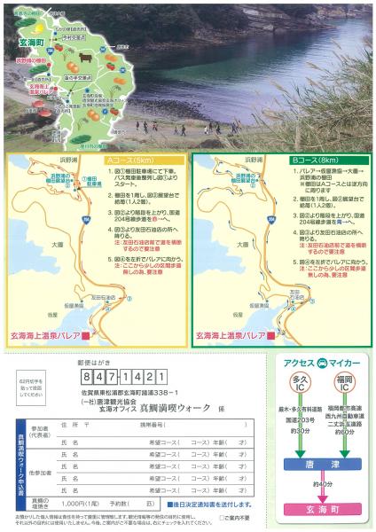 | Access | 多久IC→(厳木・多久有料道路、国道203号:約30分)→唐津→(約40分)→玄海町 福岡IC→(福岡都市高速、西九州自動車道、二丈浜玉道路:約60分) →唐津→(約40分)→玄海町 |