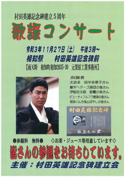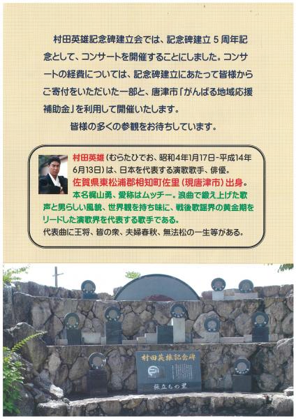 | 電話番号 | 090-2509-0030(村田英雄記念碑建立会 都市(といち)) |