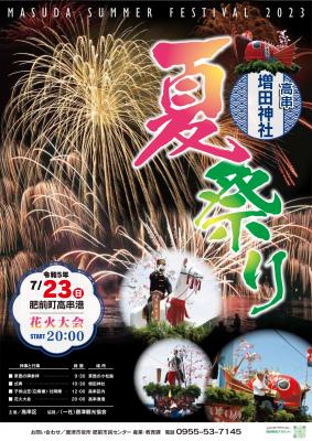 | 開催日 | 2023年7月23日(日) ※雨天の場合、花火のみ24日に順延 20:00~ |