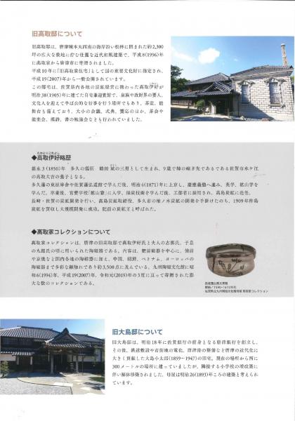 | 住所 | 【旧高取邸】「一日だけの髙取家コレクション展」 【旧大島邸】「唐津白磁と椿展」&「髙取家所蔵茶器でのお呈茶」、「第3回 佐賀県アーツコミッション「文化講演会」」 |