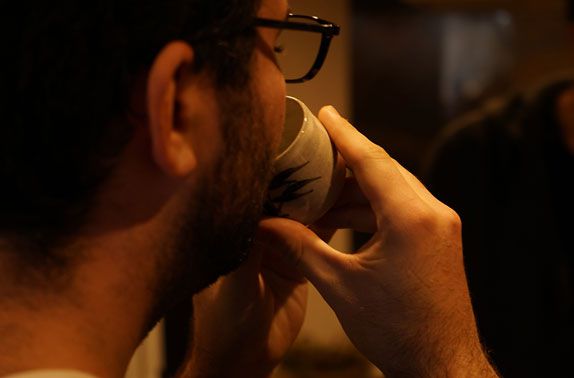 Begin by enjoying the fragrance of the sake in the choko. Then, keeping the sake in your mouth, move it around and slowly enjoy the taste.