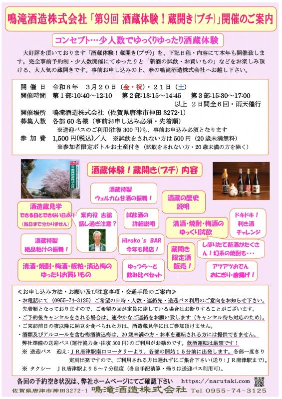 「第9回 酒蔵体験!蔵開き(プチ)」参加ご予約受付中!