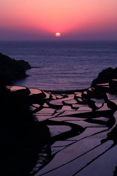 浜野浦の棚田の夕焼け