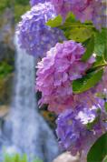 見帰りの滝周辺のあじさい及び滝を題材と...