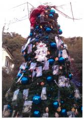 高さ5mのクリスマスツリーを設置、ツリーは海の町らしく魚網や色とりどりの貝(緋...