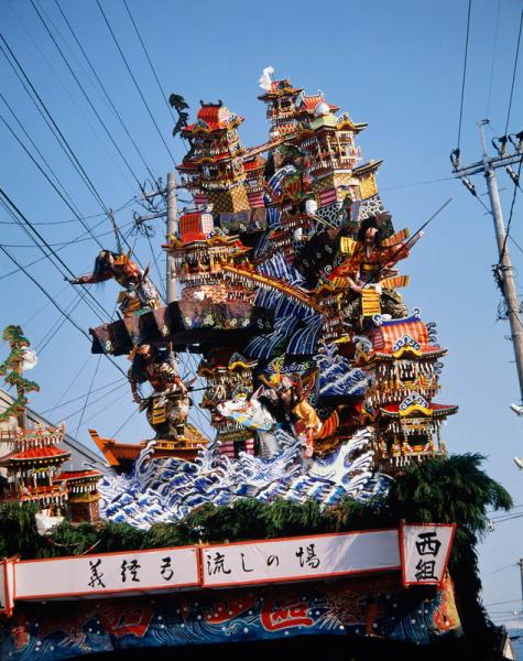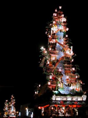 高さ15mの3台の飾り山笠を約150人の締め込み姿の男たちが引き回す勇壮な祭りで、