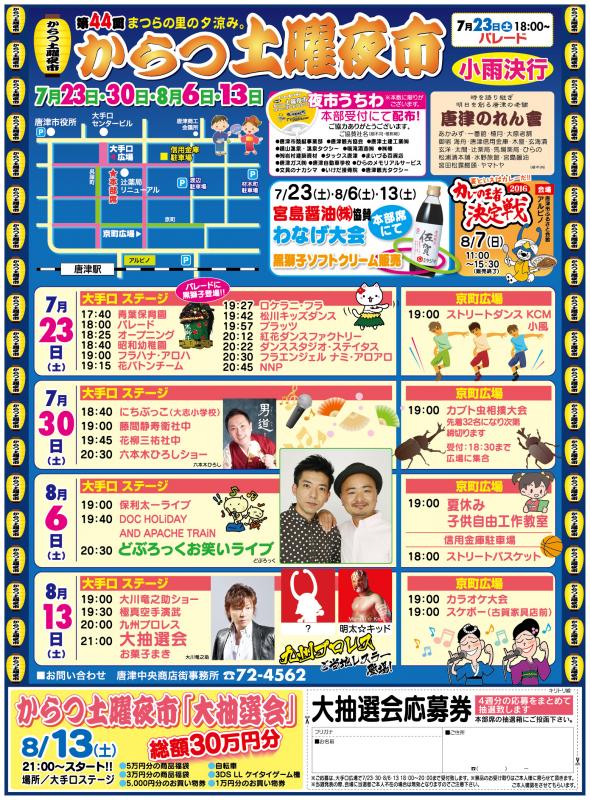 | 電話番号 | 0955-72-4562(からつ土曜夜市実行委員会) |