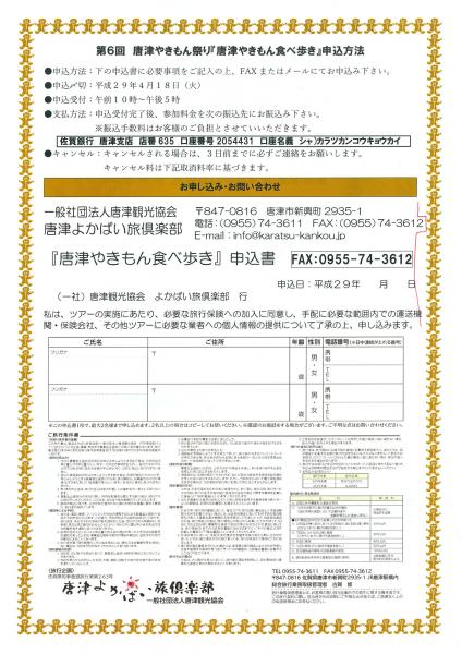 | 電話番号 | 0955-74-3611 (唐津観光協会 よかばい旅倶楽部) |