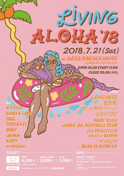 浜崎海水浴場の海の家・GREENBEACH HOUSEにてライブイベント『Living Aloha '18』が開催されます。