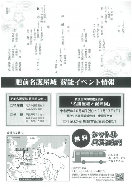 ※指定席販売は、薪能実行委員会事務局(鎮西市民センター内)又は電話予約のみ