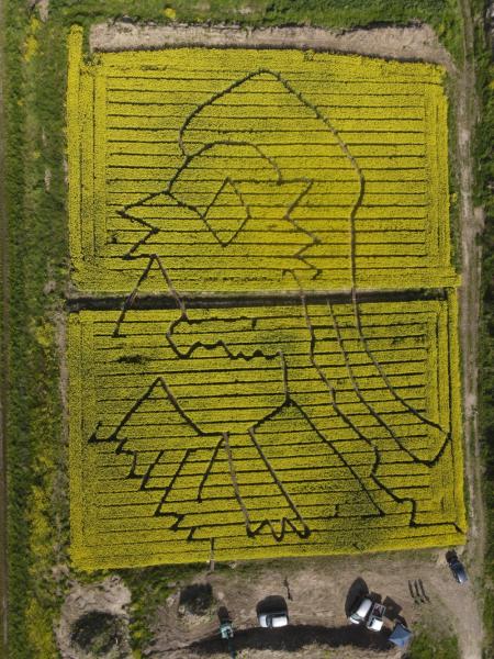総延長600mの菜の花でできた迷路が唐津の鏡山の麓に新しく完成いたしました。