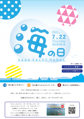 海の日の7月22日(木・祝)、二タ子の佐賀県ヨットハーバーでイベントが開催されます。