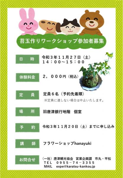 旧唐津銀行で苔玉作りを体験しませんか?