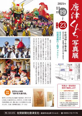 佐賀新聞社は11月19日(金)から23日(火・祝日)までの5日間、唐津市本町の旧唐津銀行1階ギャラリーで「2021唐津くんち写真展」を開催します。9月に曳山展示場からふるさと会館アルピノに引っ越しした模様や、昭和のアーカイブ写真も併せ、約400点を展示します。
