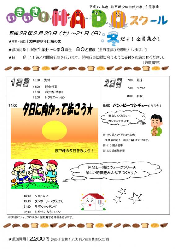 | 料金 | 参加費用:2,200円【内訳】食費 1,700円 / 宿泊費他 500円 |