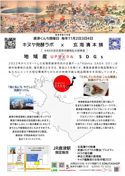 唐津名物の玄海漬を製造販売している玄海漬本舗とのコラボ商品やラボおすすめの商品を販売します。