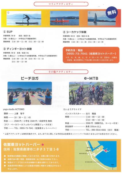 | 電話番号 | 0955-73-7041(佐賀県ヨットハーバー) |