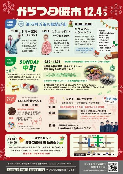 | 時間 | 第65回五福の縁結び市 10:00~15:00 SUNDAY中町 10:00~15:00 KARAE 10:00~16:00 |