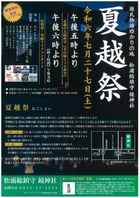 | 時間 | 17:00~21:00 夏越の大祓神事 17:00~ 灯明祭・奉納ライブ 18:00~ |
