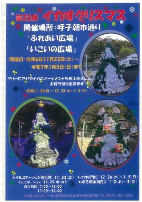 クリスマスツリーにスルメやアジみりん干しのオーナメントを装飾 平日30枚、土日60枚