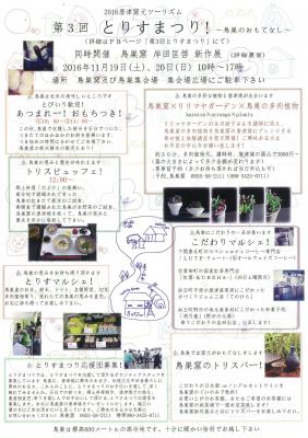 | ホームページ | 第3回とりすまつり https://www.facebook.com/events/1797470670508996/ |