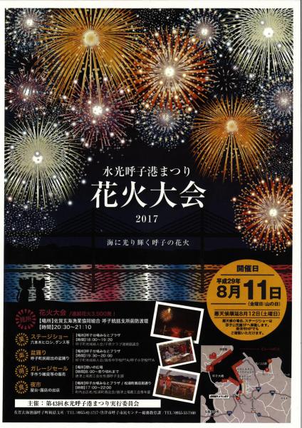 | 開催日 | 平成29年8月11日(金) 悪天候の場合、花火大会のみ8月12日(土)に順延  |
