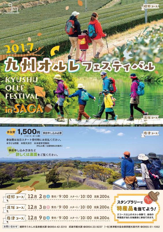 | 開催日 | ● 嬉野コース 12月2日(土) ● 武雄コース 12月3日(日) ● 唐津コース 12月9日(土) ※雨天決行 |
