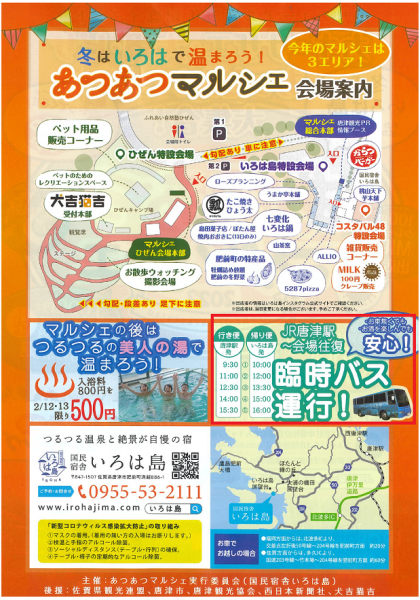 | 교통 수단 | JR唐津駅~会場往復臨時バス通行! |