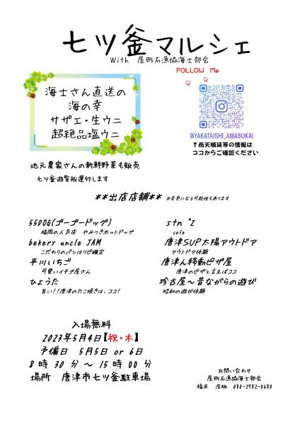 電話番号 080-2782-0680(屋形石漁協海士部会 福本)