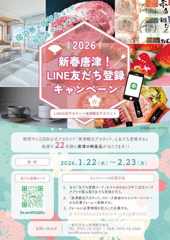 キャンペーン期間中にLINE公式アカウント「唐津観光アカウント」と友だち登録すると抽選で22名様に唐津の特産品が当たります!!