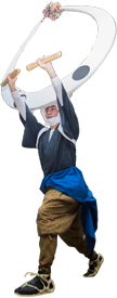 풍년 감사의 뜻으로 봉납되는 민속예능 “후류 (浮立)”. 피리와 큰북, 징의 리듬에 맞춰 춤추는 것을 기본으로 하지만, 전승한 토지의 특색에 따라 흥취가 확 달라집니다.