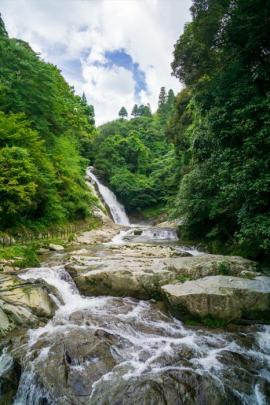 その荘厳な美しさにより日本の滝百選にも数えられる景勝地。八つの滝と淵で構成された渓谷に沿って遊歩道も設けられており、眼病にご利益があるとして多くの参拝客を集めています。