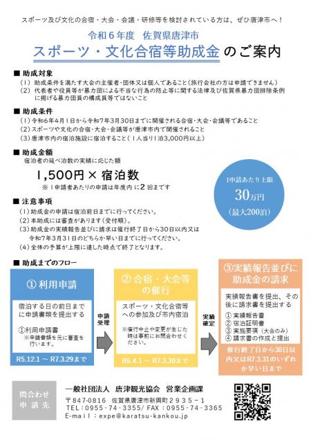 令和6年度 佐賀県唐津市スポーツ・文化合宿等助成金のご案内