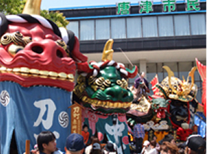「唐津くんち」が、現在のような形式になったのは、文政二年(1819)から明治九年(1876)までの57年間に、15台の曳山(ひきやま)が次々と奉納されてからです。