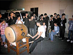 唐津くんちの曳山には、曳山が動いている時に奏でる「競り囃子」、止まっている時の「立て山囃子」、神社参道のみで奏でる「道囃子」の3種類の囃子があります。このうち、「道囃子」は一番曳山の刀町「赤獅子」のみが奏でます。 唐津曳山囃子保存会は、後継者の育成や伝承を目的に昭和4年頃から活動していたそうですが、曳山取締会内の組織として正式に発足したのは約20年前。現在のメンバーは、曳山を保有する14町内の囃子好き18人(20~60歳)です。 主な活動としては毎月9日(くにち~くんち)に唐津神社で行われる練習会の他、要請があれば唐津くんちをPRするため全国各地のイベントへも遠征しています