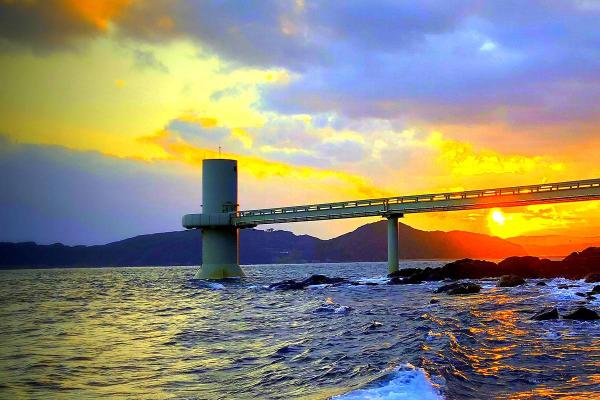 陸地より86mの桟橋でつながれた海中展望塔の海上デッキからは玄界灘の島々を見渡すことができ、