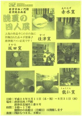 • 唐津市西ノ門館唐津焼企画展「晩夏の四人展」
