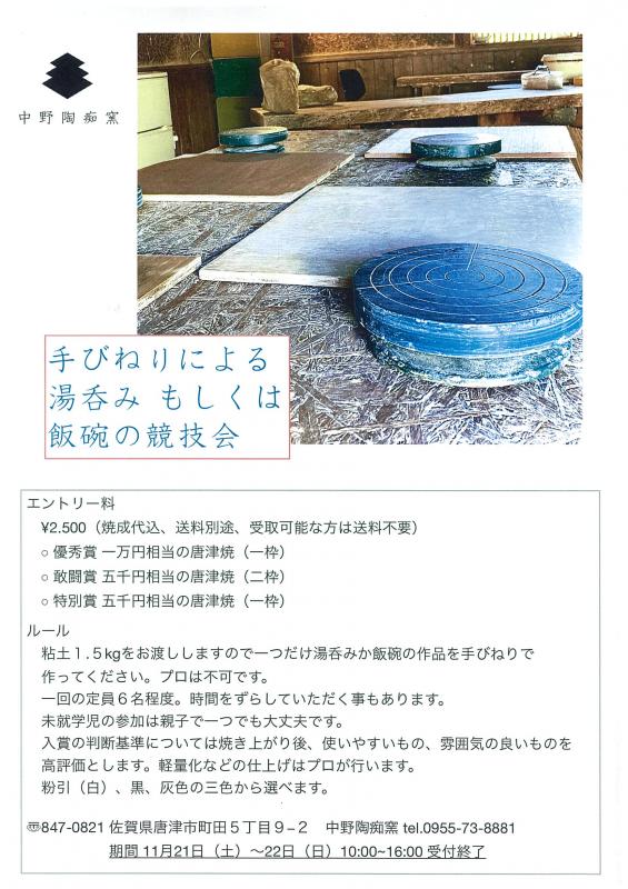 • 【窯元ツーリズム】手びねりによる湯呑み もしくは飯碗の競技会