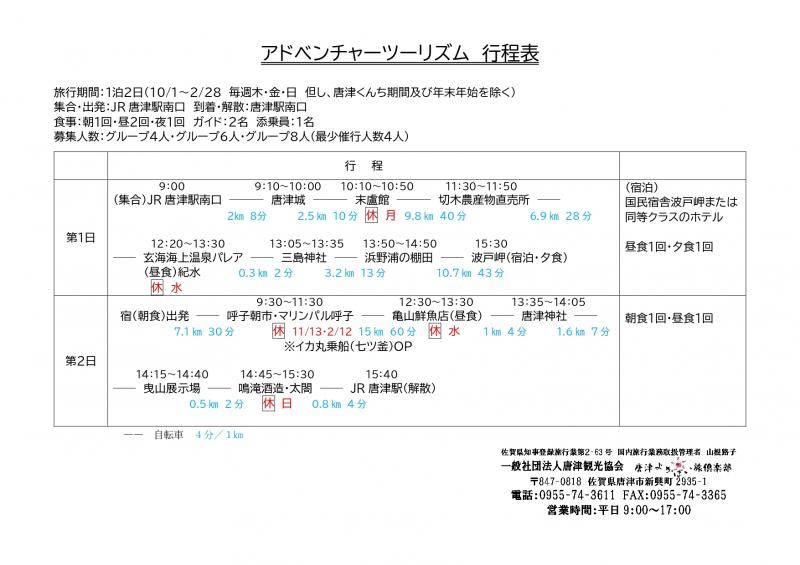開催日程 | 毎週木曜日、金曜日、日曜日 出発 但し、唐津くんち期間中及び年末年始は除く |
