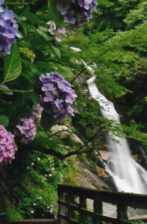 見帰りの滝周辺のあじさい及び滝を題材として、