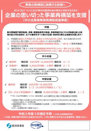 ポストコロナ・ウィズコロナ時代の経済社会の変化に対応するための企業の思い切った事業再構築を支援(中小企業等事業再構築促進事業)