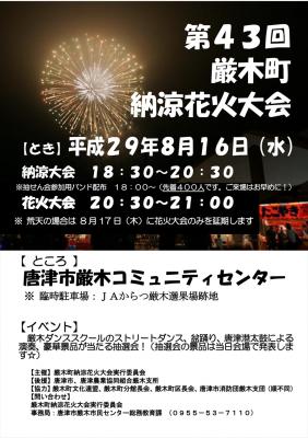 第43回厳木町納涼花火大会終了しました開催日:平成29年8月16日(水)