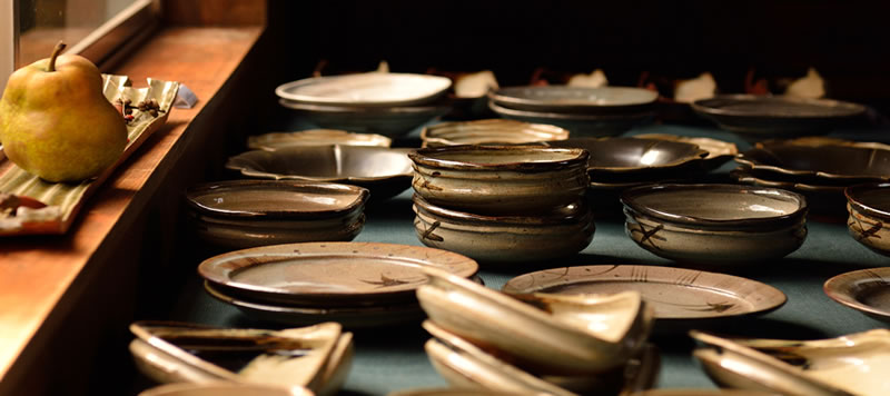 三島是傳承朝鮮的李朝三島的技法。在半乾的底料印上花紋、線雕等圖樣﹐再塗上化妝土﹐再淋上釉藥入窯燒製而成。唐津是從江戶時代就開始進行生產。