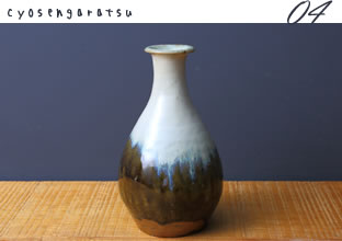 使用鐵釉跟灰釉兩種不同的釉藥﹐高溫燒窯後釉藥自然融合的模樣很有妙趣。一般大多是先在下方淋上會顯現黑色的鐵釉﹐再從上方倒下乳白色的灰釉。